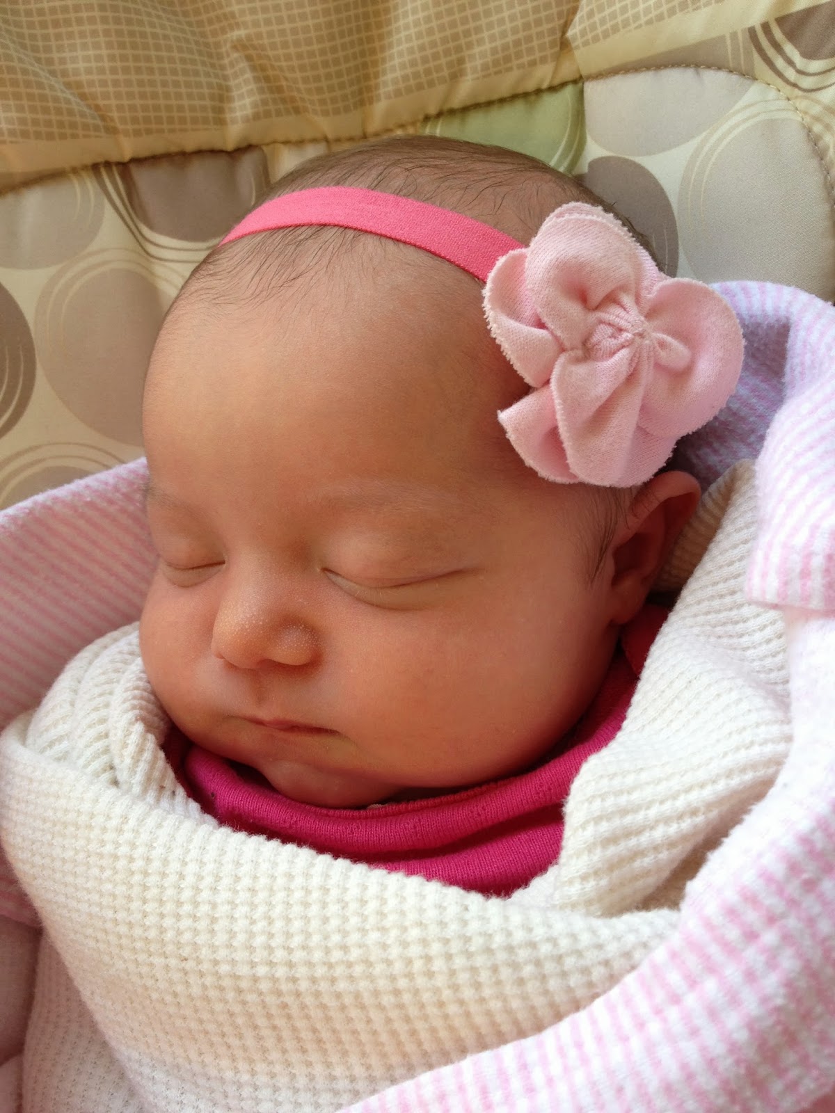 Addison Leigh turned one month old yesterday. Weighing in at a whopping 11 pounds and 1 ounce (91%), she has gained 3 pounds and 9 ounces in her first month of life. What can I say? Girlfriend likes to EAT! She nurses every 2-2.5 hours during the day and every 3-3.5 hours during the night. She has also grown 1.25 inches since birth (from 21" to 22.25" {93%}) We had to stop using Newborn size clothes and diapers around 3 and a half weeks old due to her rapid growth! I am so happy she is healthy and growing.